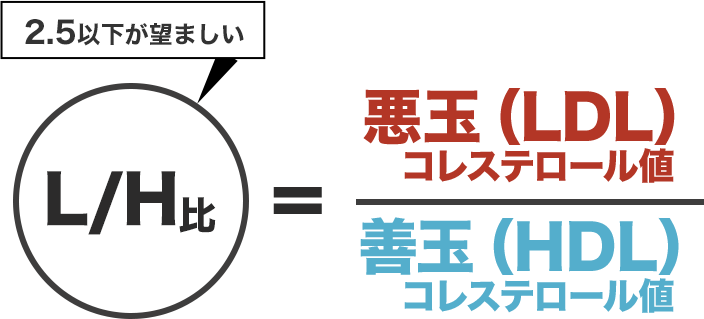 HDLとLDLによる運搬と回収のバランスが取れている状態が望ましく、そのバランスを示す指標として、L/H比が参考になると言われています。L/H比に基準値は定められていませんが、「2.5以下が望ましい」とされています。